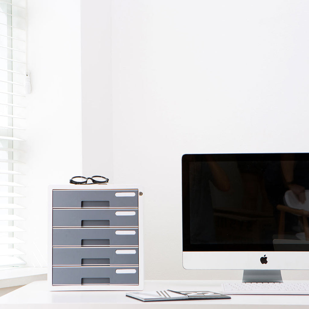 • 5 Drawer Lockable cabinet desktop set, for storing paper documents, simple and modern design for home and office use.