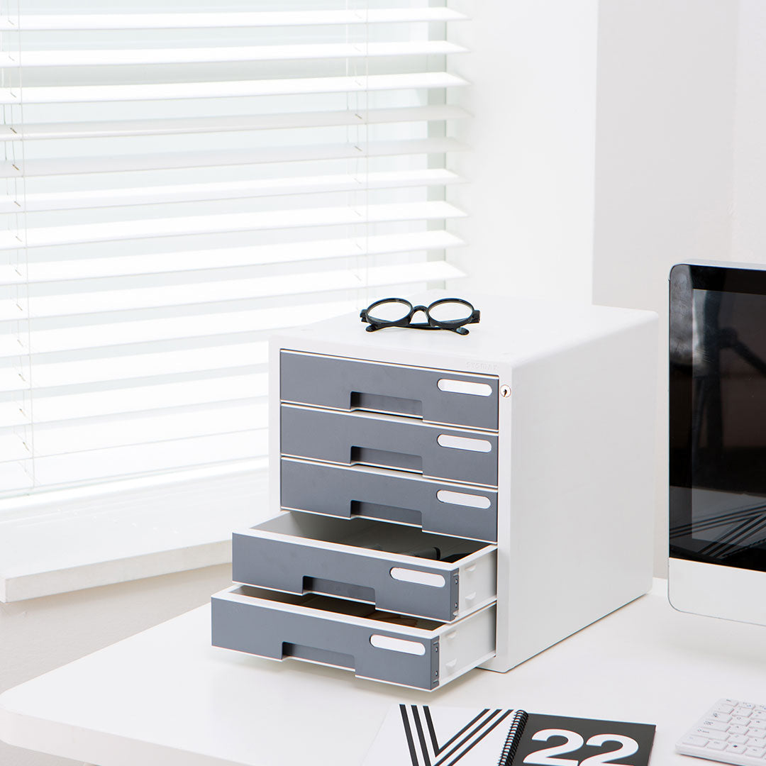 - 5 Drawer Lockable cabinet desktop set, for storing paper documents, simple and modern design for home and office use.Â
