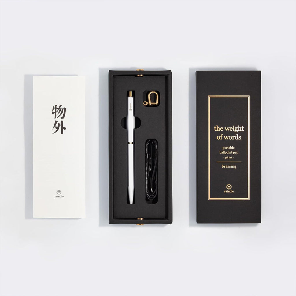 Home Ystudio Classic Revolve Portable Ballpoint Pen Brass (White finish)