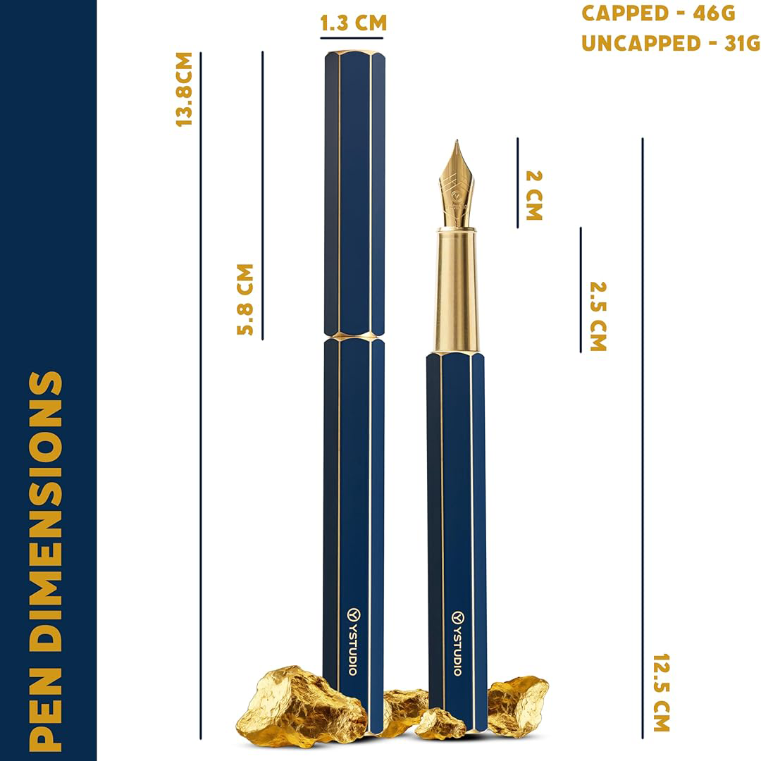 Ystudio Classic Revolve Fountain Pen - Blue Hexogon | Medium Nib