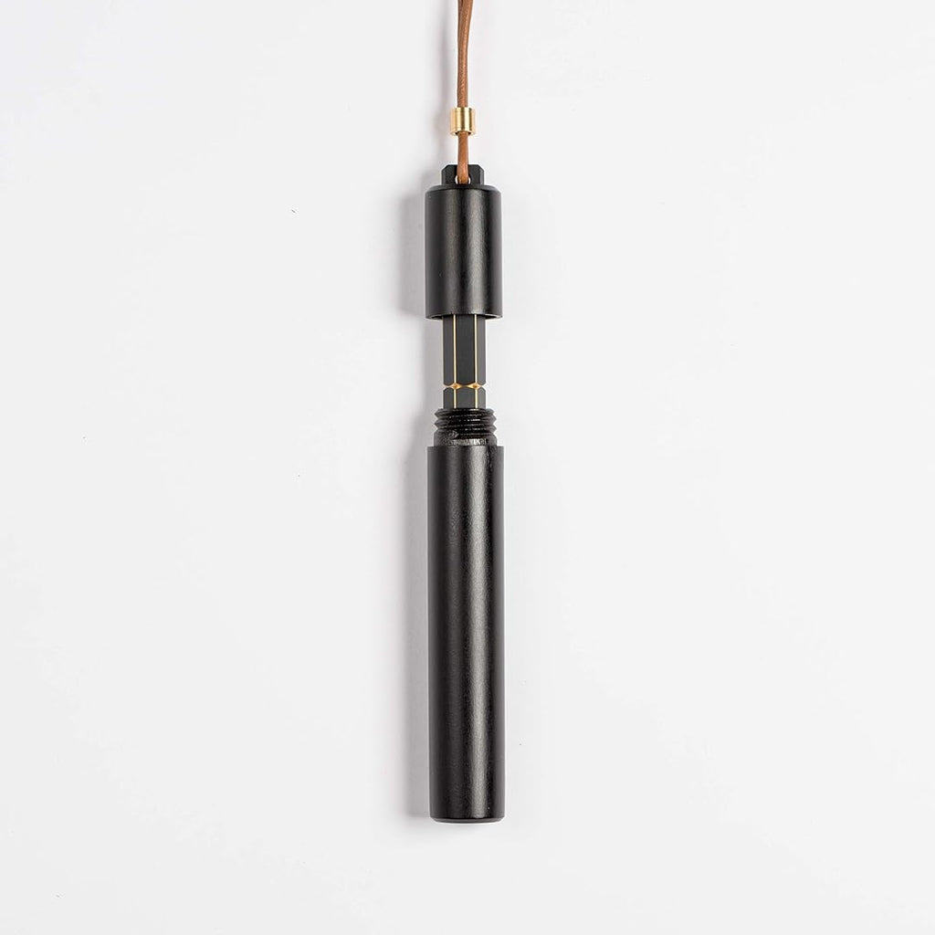 Ystudio’s portable fountain pen creates a new way to bring your fountain pen with you. You can hang it on your bag and open it to start writing. The pen writes steady and smooth. The nib is from Germany Schmidt nib and it comes with Schmidt converter inside. It's a true eye-catcher and a great gift suggestion. This pen is made of solid brass and has exquisite gold lines. It comes with one maple pen case (in black color) and one paper box package.